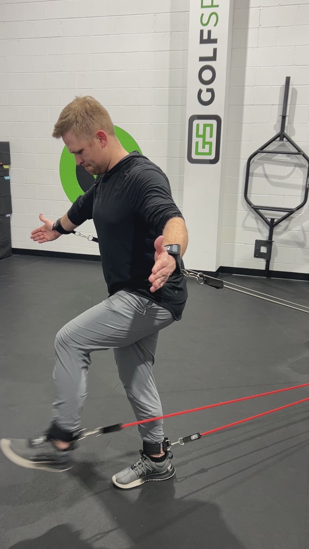 - Application on how to use the hip harness while swinging the club.
