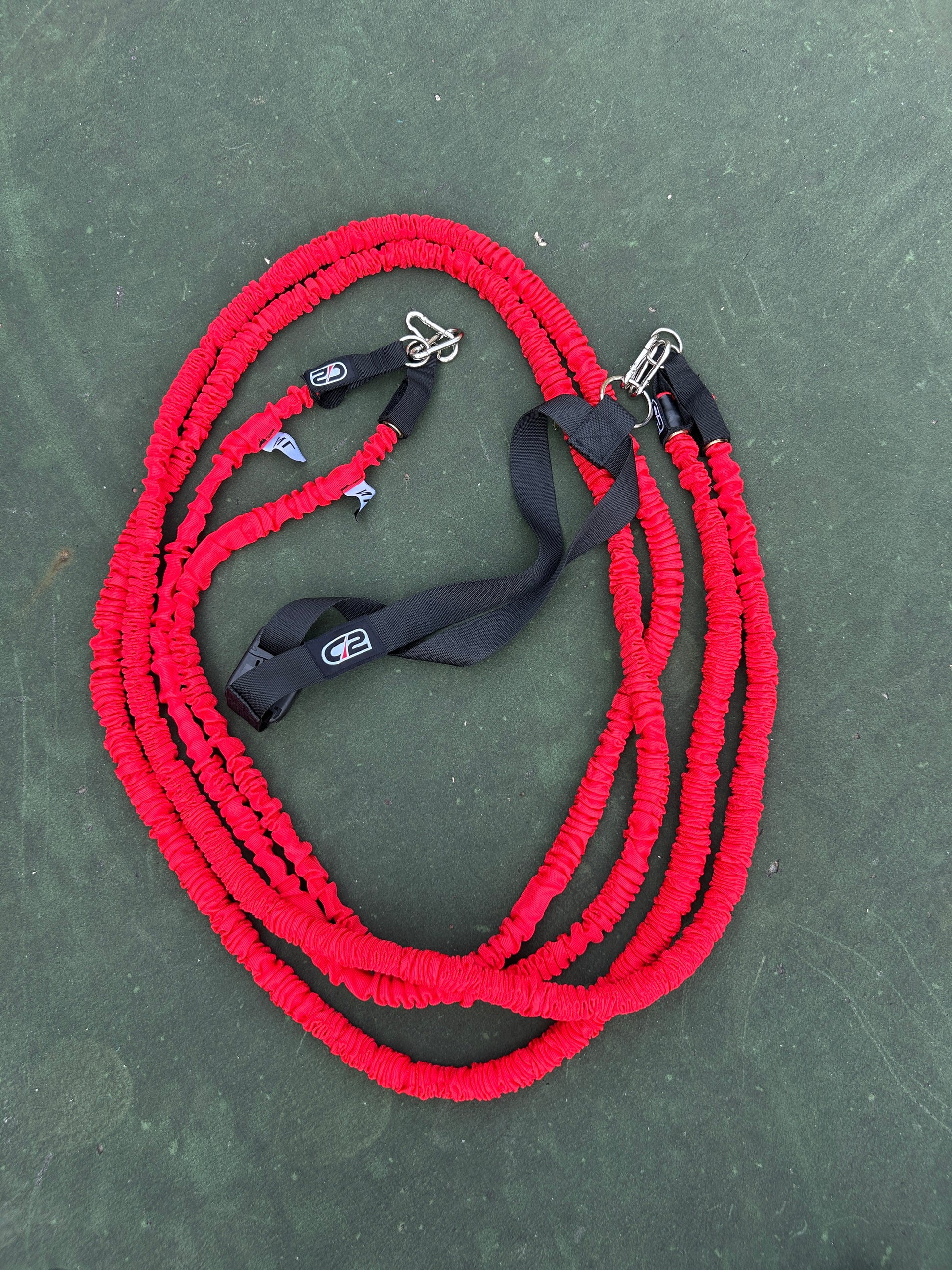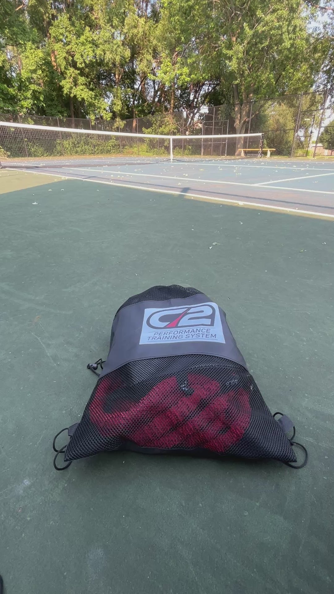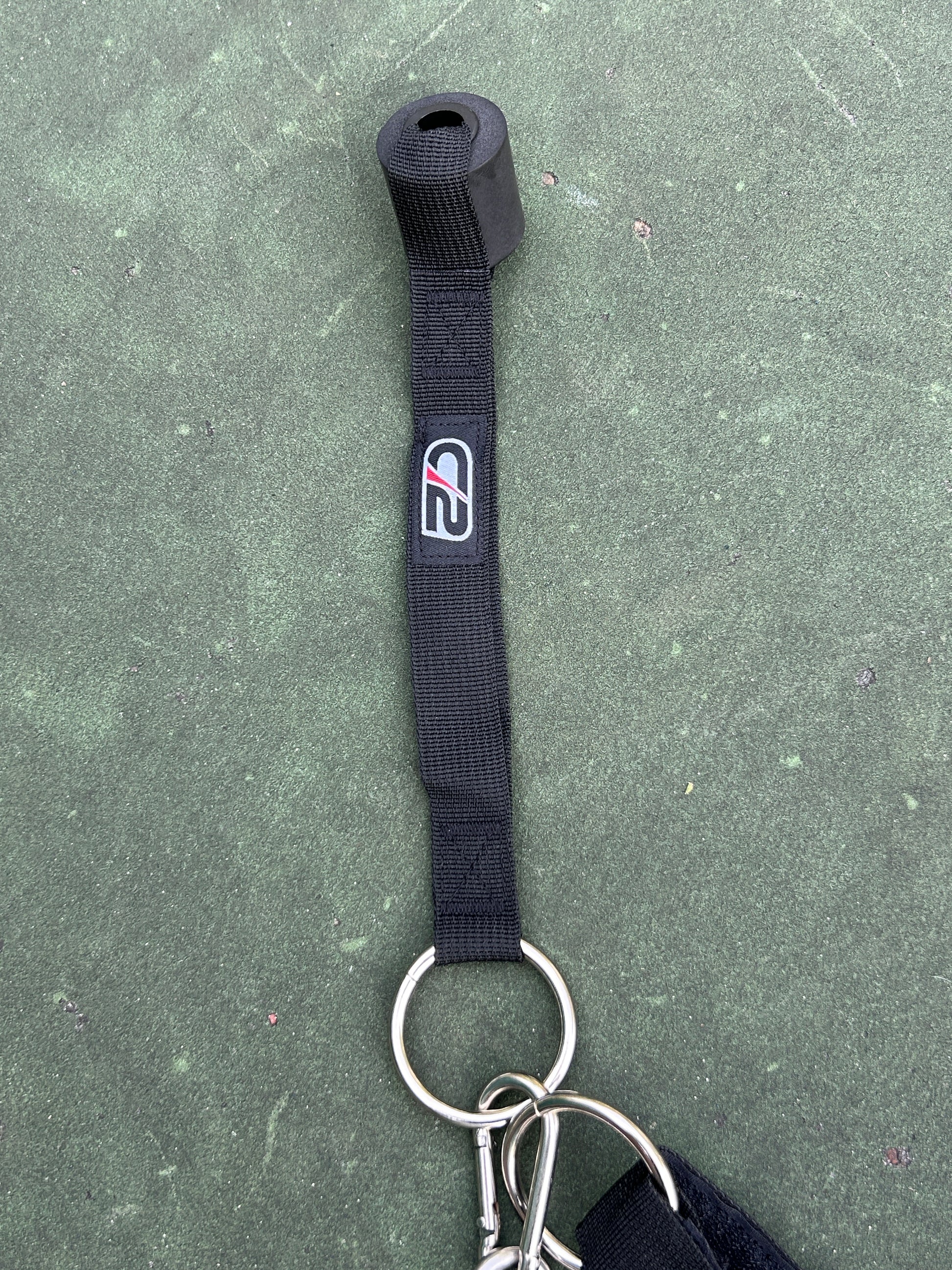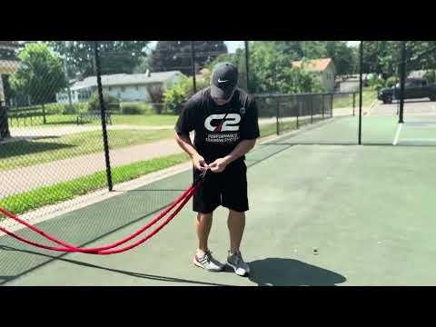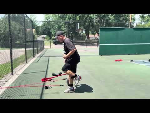 Ankle cuffs allow you to activate the hip flexors. Wrist cuffs activate the core and shoulder muscles. The hitting harness is rotational training aid for forehands and backhands. The Speed Belt and sleeved bands are for playing and volleying. You can play pickleball while hooked up to 10-foot bands. This will challenge your cardio.